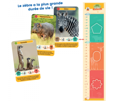 Les caractéristiques des animaux sont représentées par des petits dessins, rendant ainsi les cartes accessibles aux plus jeunes !