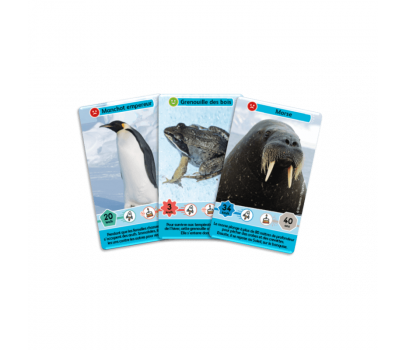 Chaque carte Défis Nature Junior - Royaumes du froid est illustrée d’une photographie de l’animal dans son environnement naturel, de ses caractéristiques (vitesse max et âge max) et contient un petit texte éducatif pour en savoir plus sur l’espèce. Parfait pour apprendre en s’amusant !