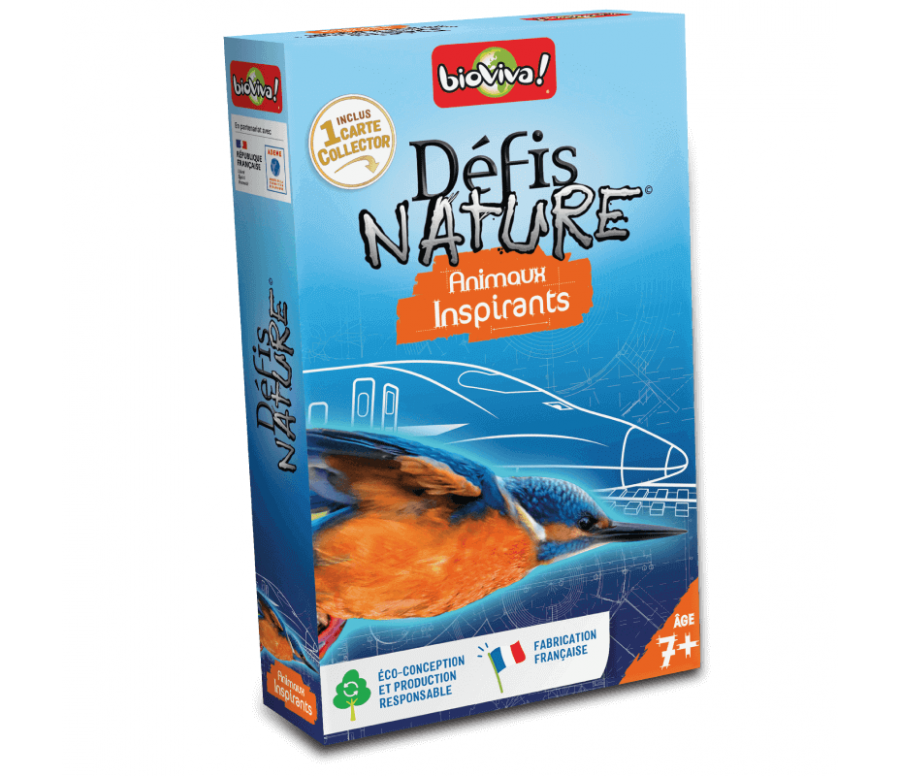 Le plus de ce Défis Nature : ce jeu contient un dépliant présentant les innovations inspirées des animaux présents dans ce Défis Nature. À titre d’exemple, la structure du bec du toucan toco a inspiré une bouilloire économe en énergie. La technique du papillon morpho pour réguler sa température a permis de développer un vernis préservant les panneaux solaires de la surchauffe.