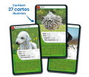 Chaque carte Défis Nature - Chiens est illustrée d’une photographie de l’animal dans son environnement naturel, de ses caractéristiques (taille, poids, longévité, date d'apparition) et contient du contenu éducatif pour en savoir plus sur l’espèce. Parfait pour apprendre en s’amusant !