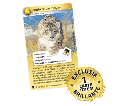 Le contenu et le degré de rareté des cartes varient d’un Booster à l’autre. Seuls les Boosters offrent une chance d'obtenir la carte totem Ultra Rare du rhinocéros noir de l'Est ! Cette carte est imprimée en seulement 583 exemplaires puisqu’il s’agit du nombre d’individus restants dans la nature. Une excellente manière de sensibiliser les enfants à la protection des animaux !