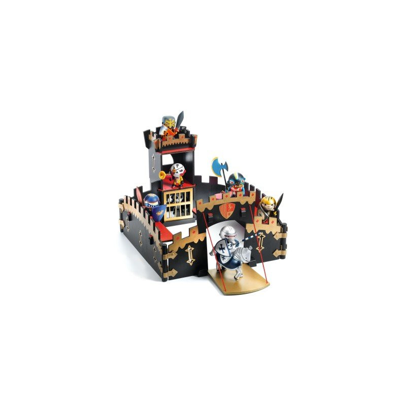 En bois et modulable, Ze Black Castel est le château idéal pour jouer avec ses figurines Arty toys. Le pont-levis s’actionne vraiment pour laisser rentrer les chevaliers. La tour permet de surveiller l’arrivée des ennemis, qui finiront enfermés au cachot. On peut choisir de fermer le château en assemblant les panneaux de bois à l’aide des chevilles en plastique, ou bien de jouer avec le château déplié tout en longueur, en forme de rempart.