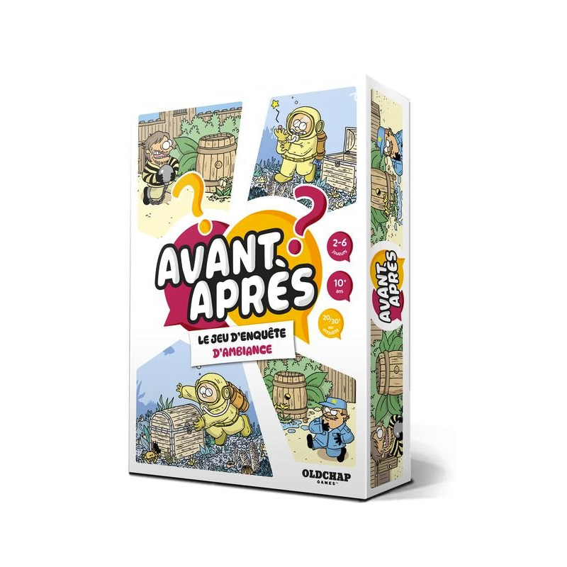 Le jeu d'enquête en deux images ! Dans ce jeu coopératif, une partie des joueurs voit l’illustration d’une scène se déroulant Avant, tandis que l’autre partie des joueurs voit la scène se déroulant Après. Communiquez ensemble afin de comprendre tout ce qui s’est passé entre les deux illustrations.