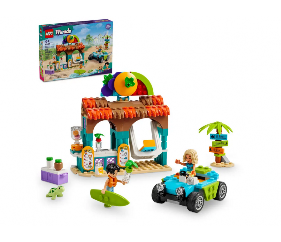 Invitez les enfants à faire preuve de créativité avec Le bar à smoothies de la plage LEGO® Friends (42625), pour les filles et les garçons dès 6 ans. Le set inclut un bar à smoothies et un buggy de plage à construire, ainsi que les mini-poupées LEGO Friends de Nova et Niko.